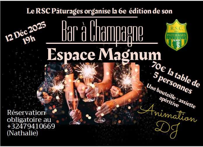 Le RSC Pâturages organise la 6ème édition de son Bar à Champagne avec Animation DJ